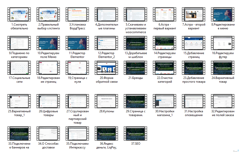 В курсе 37 уроков, и все необходимые для работы файлы.