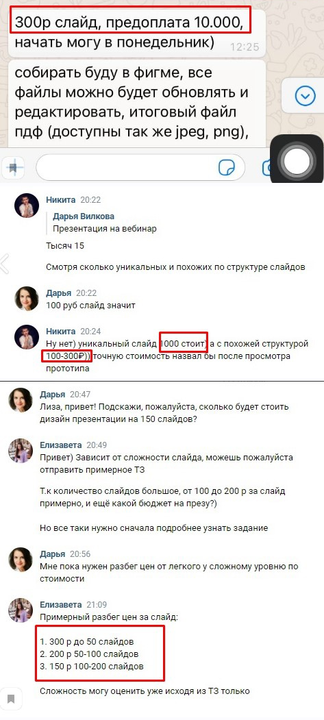 Если в общем, то это чеки от 30 000 рублей: оплата за презентацию под вебинар плюс-минус 100 слайдов.