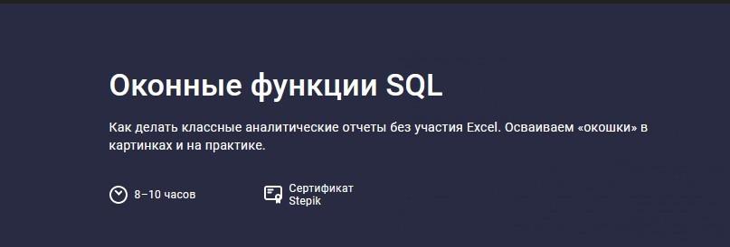 Оконные функции — реально сложная тема. Поэтому курс не пытается объять необъятное, и дает тот минимум теории, который приносит 80% ценности. А еще на курсе много практики — потому что только с ней абстрактные знания превратятся в навыки.